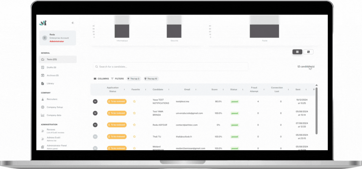 لا داعي للاستعانة بخبيرللتحقق من مرشحيك.يمكنك تقييمهم من خلال مراجعة نتائج Evalil من خلال بيانات ورسوم بيانية مبسطة يسهل فهمها حتى بالنسبة لغير الخبراء.